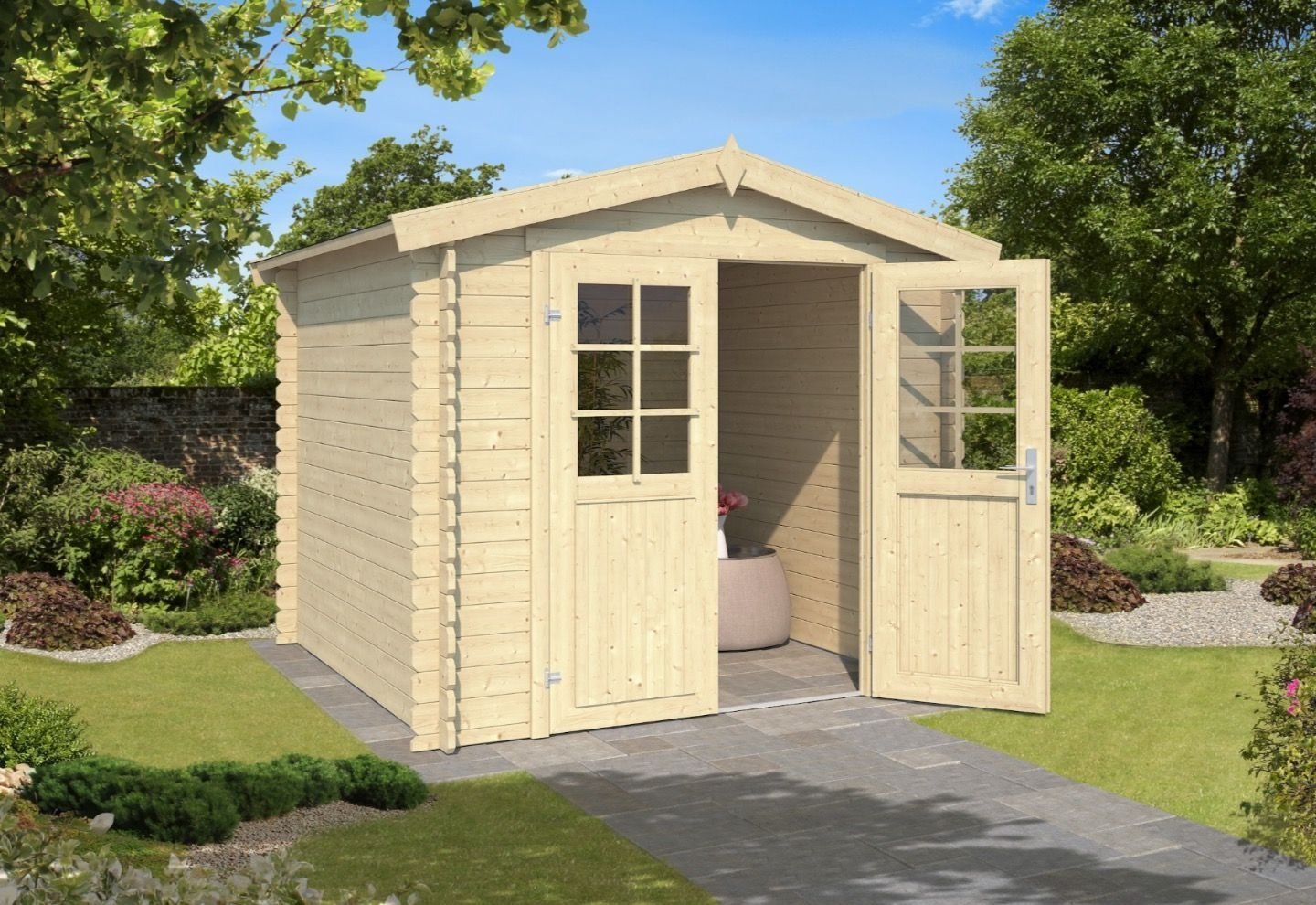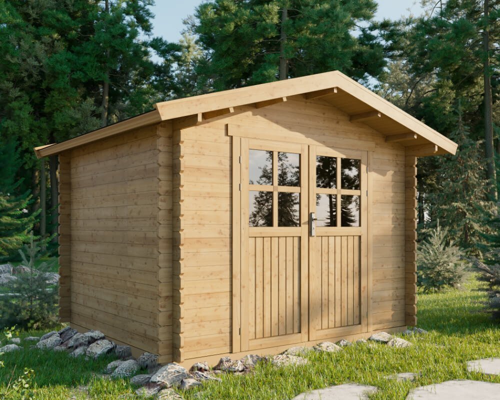 Outdoor Life Blokhut Ingo 230×230 Onbehandeld met Zadeldak van Noord Europees Vurenhout | 250cm x 250cm | 28mm