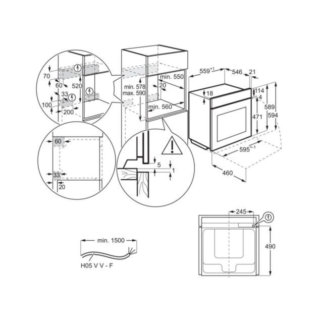 - 60 cm hoog | Geschikt voor inbouw in een hoge kast of onder het aanrecht, zie maatschets