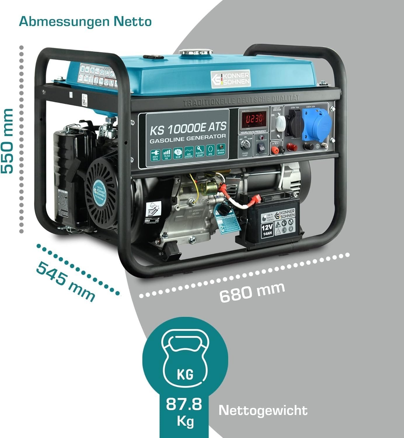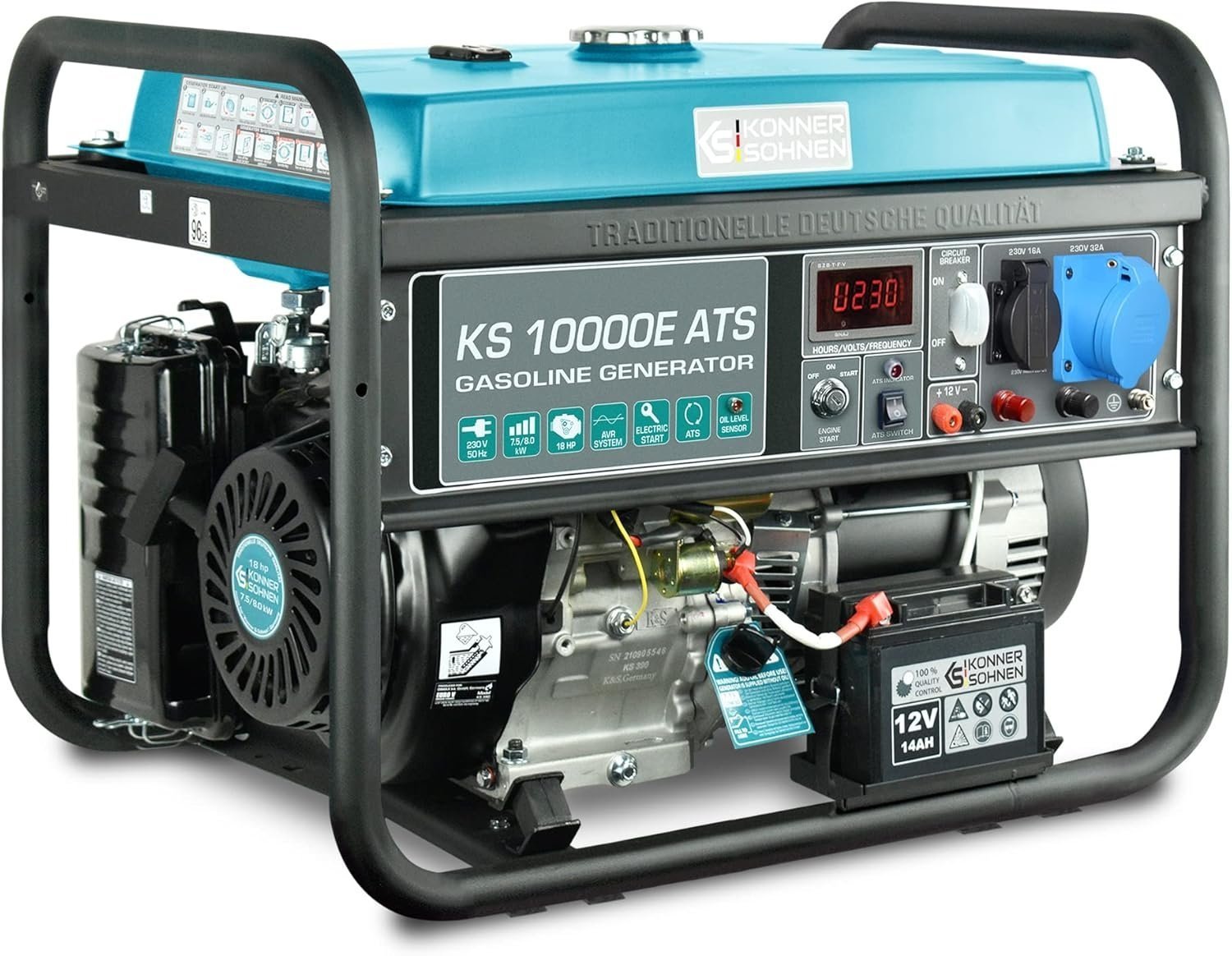 Könner & Söhnen KS 10000E benzinegenerator biedt betrouwbare en stabiele stroom voor uiteenlopende toepassingen zoals thuis, werkplaats, bouwplaats, kamperen, buitenactiviteiten, evenementen en noodsituaties. Generator beschikt over krachtige motor met hoog rendement, efficiënt brandstofverbruik en stille werking, wat langdurig gebruik comfortabel en efficiënt maakt. Robuust en duurzaam frame beschermt interne componenten tegen stoten, trillingen en weersinvloeden, waardoor generator geschikt is voor intensief gebruik in verschillende omgevingen. Multifunctionele aansluitingen maken het eenvoudig om meerdere apparaten tegelijk van stroom te voorzien, inclusief huishoudelijke apparaten, elektrische gereedschappen en elektronische apparatuur. Onderhoudsvriendelijk ontwerp zorgt voor eenvoudige reiniging en service, verlengt levensduur en garandeert constante prestaties in alle omstandigheden. KS 10000E combineert krachtige prestaties, draagbaarheid en betrouwbaarheid en is daardoor ideaal voor zowel professioneel gebruik als recreatieve activiteiten, met optimale balans tussen vermogen, veiligheid en gebruiksgemak.