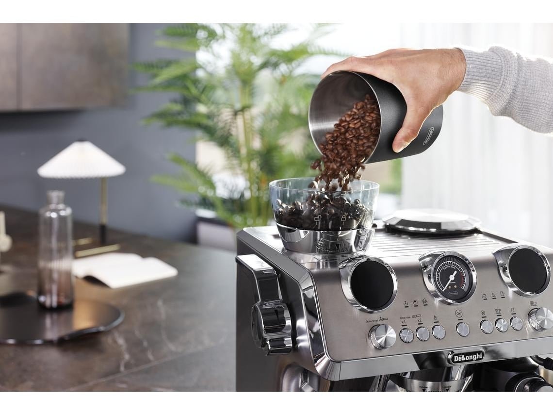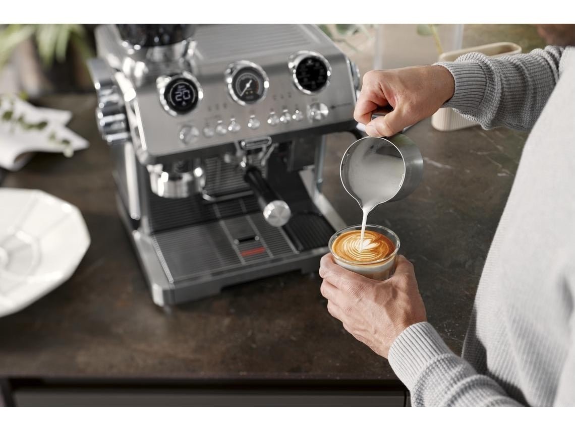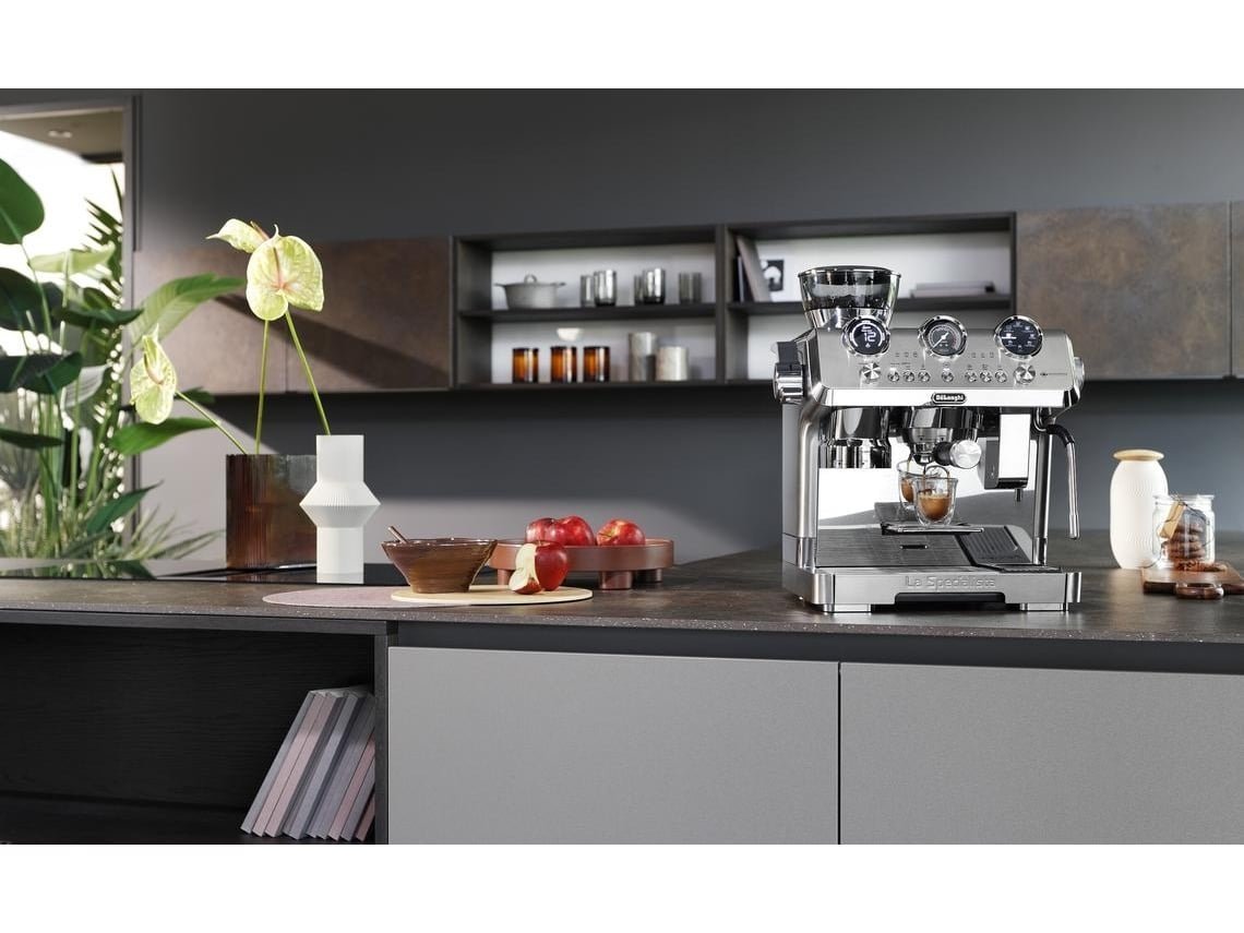 De De’Longhi La Specialista Maestro EC9885.M is een luxe halfautomatische espressomachine met geïntegreerde koffiemolen en geavanceerde technologie voor een ultieme barista-ervaring thuis. Dankzij Sensor Grinding Technology wordt elke keer precies de juiste hoeveelheid bonen gemalen. De machine beschikt over meerdere zetprofielen, een dynamisch verwarmingssysteem met dubbele temperatuurregeling en een automatische melkopschuimer voor cappuccino’s en latte’s. Het robuuste roestvrijstalen design en het intuïtieve bedieningspaneel maken deze machine tot een echte blikvanger in de keuken.