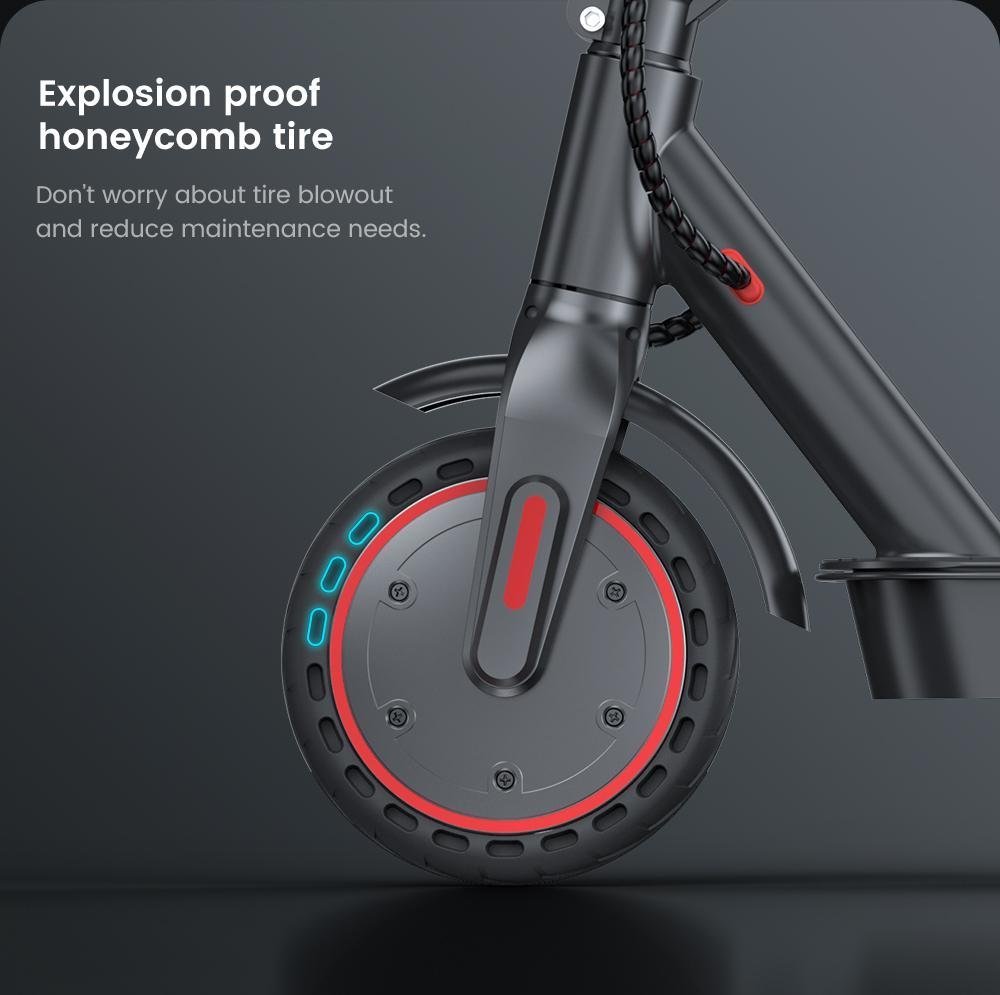 Rijd met een gerust hart! Deze scooter is UL2272-gecertificeerd voor optimale veiligheid en betrouwbaarheid. De 10-inch opblaasbare banden zorgen voor superieure stabiliteit, terwijl de heldere led-koplampen en -achterlichten zorgen voor uitstekend zicht, waardoor hij perfect is voor woon-werkverkeer, zowel overdag als ’s nachts.