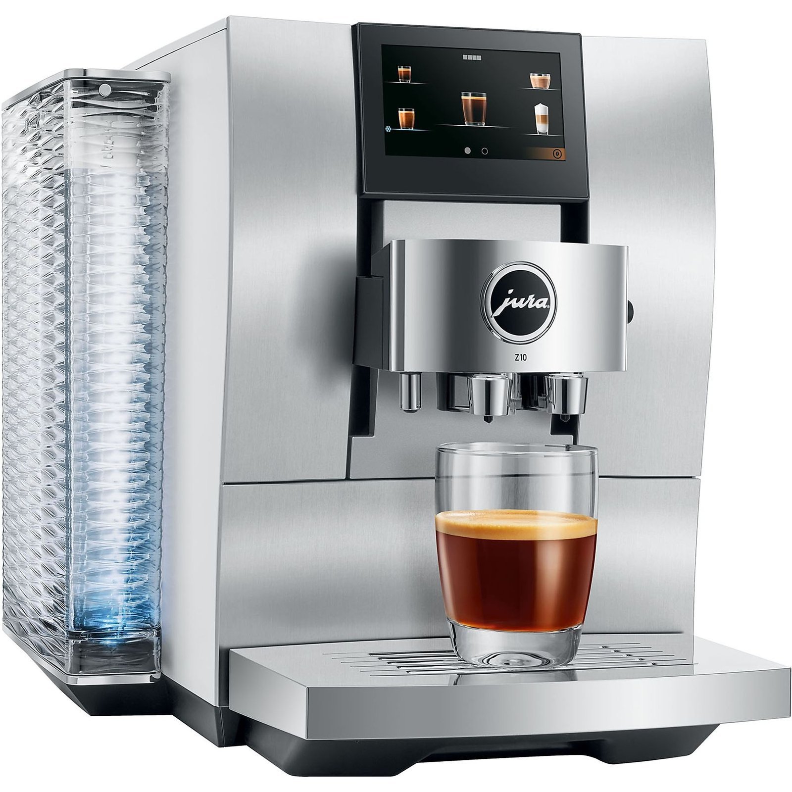 De Jura Z10 is een innovatieve espressomachine waarmee je warme en Cold-Brew-koffiespecialiteiten bereidt. Met dit uitgebreide en zeer luxe apparaat maak je bijna iedere koffiespecialiteit die je maar kunt bedenken: van dubbele espresso’s en cappuccino’s tot aan Cold Brew-macchiato’s en flat whites. Dankzij de P.R.G. (Product Recognising Grinder) wordt de gekozen specialiteit direct herkend, waarop de maalfijnheid wordt aangepast. Daarnaast werkt deze espressomachine met Jura’s geavanceerde Cold Extraction Process, waarmee koud water onder hoge druk langzaam pulserend door de vergemalen koffie wordt geperst. Je bedient de machine gemakkelijk en intuïtief via het 4,3-inch-touchdisplay en de Blue Crystal Rotary Switch.