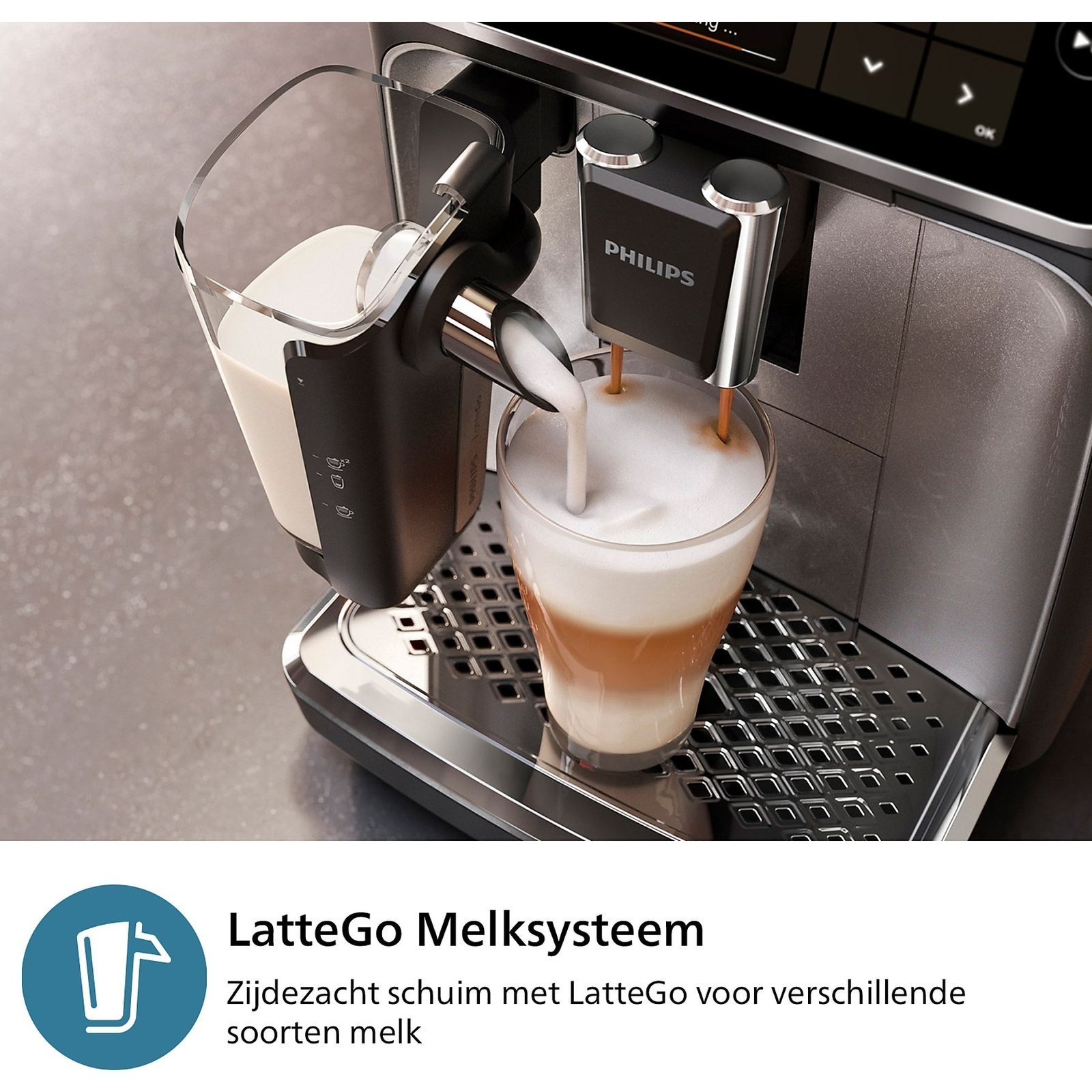 - Fluweelzacht, romig schuim: bereid fluweelzacht, romig melkschuim met het LatteGo-systeem – het bestaat uit slechts twee vaatwasmachinebestendige delen en is daardoor gemakkelijk schoon te maken