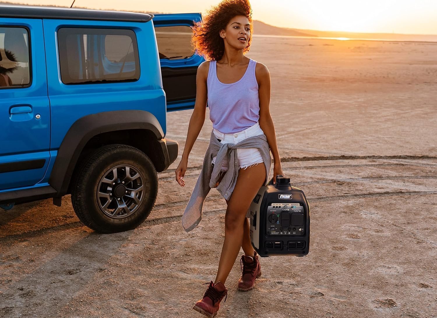 Pulsar PGD40ISCO ultra-lichte draagbare gasinvertergenerator 4000W ontworpen voor stille werking en maximale efficiëntie geschikt voor kamperen buitenactiviteiten noodgevallen en bouwplaatsen compacte krachtige generator levert stabiele stroom voor gevoelige apparaten zoals laptops smartphones en verlichting robuuste constructie eenvoudig te vervoeren met handvatten en wielen brandstofefficiëntie verlengt gebruiksduur stille werking minimaliseert geluidsverstoring ideaal voor gebruik in woonwijken of natuurgebieden betrouwbare invertertechnologie beschermt aangesloten apparatuur tegen spanningspieken multifunctioneel ontwerp geschikt voor zowel binnen als buiten gebruik onderhoudsvriendelijk eenvoudig bij te vullen brandstoftank veiligheidsvoorzieningen inclusief automatische uitschakeling bij lage olie niveaus en overbelasting gebruiksvriendelijke bediening met digitale display voor spanningsfrequentie en gebruiksuren duurzame materialen bestand tegen weersinvloeden en ruwe omgevingen perfecte combinatie van draagbaarheid prestaties en betrouwbaarheid voor continu stroomvoorziening in diverse situaties.