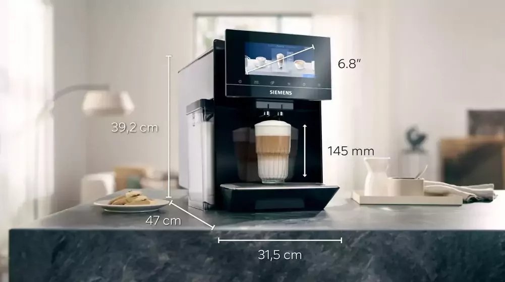 De Siemens EQ900 TQ903R09 Volautomatische espressomachine is één van de stilste koffiemachines van Siemens. Met het intuïtieve full-touch display en de Home Connect App kan je elke koffienuance regelen als een barista.