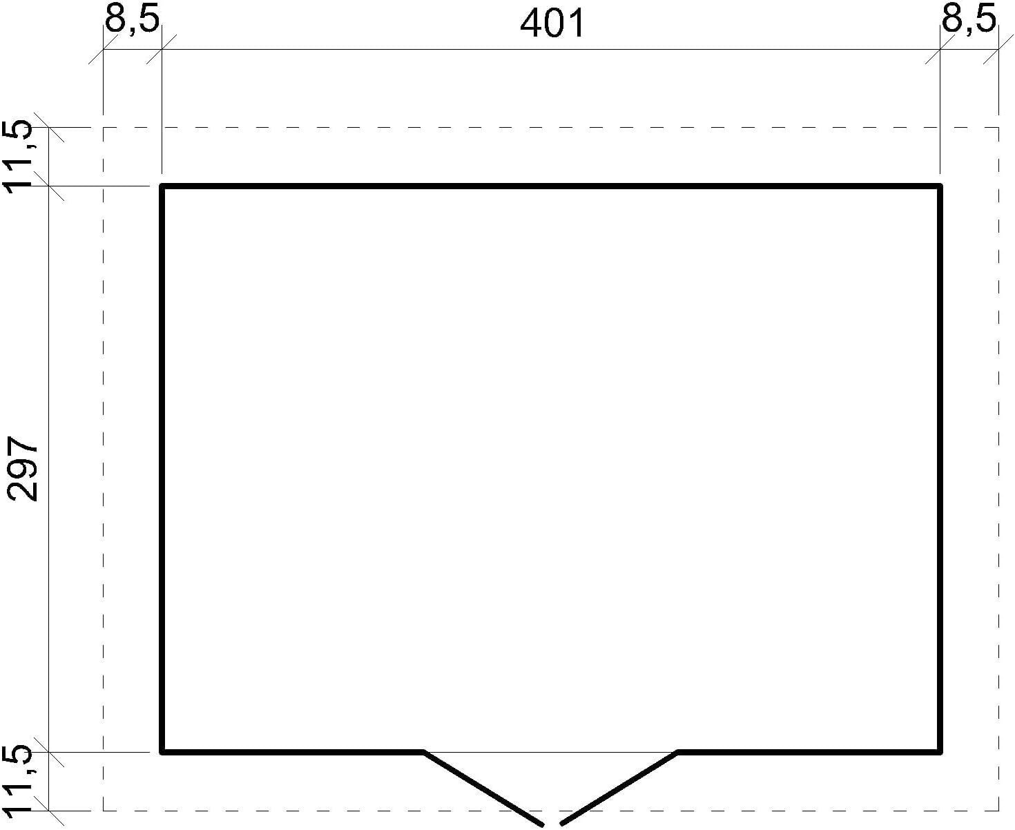 – Buitenafmetingen vloer: 297 x 401 cm