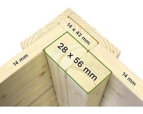 De Mollie 1 is opgebouwd volgens de traditionele houtskeletmethode. Dankzij de rondomlopende en dubbel uitgevoerde frameconstructie is het tuinhuis bijzonder stabiel en duurzaam – zelfs bij intensief gebruik.